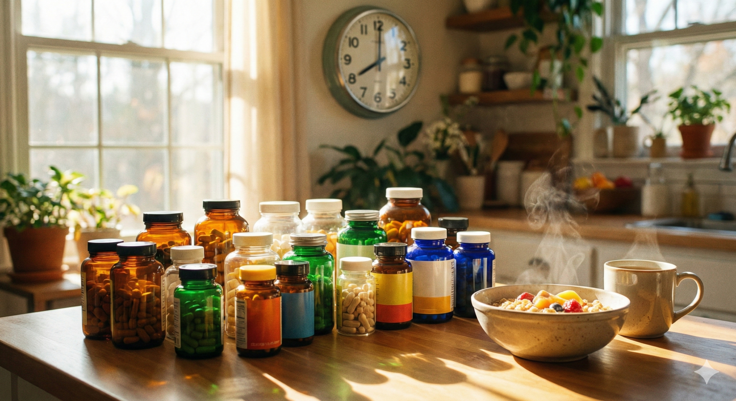 | 종합 비타민 | 식후 (아침 or 점심) | 위장 자극 감소, 에너지 공급 |